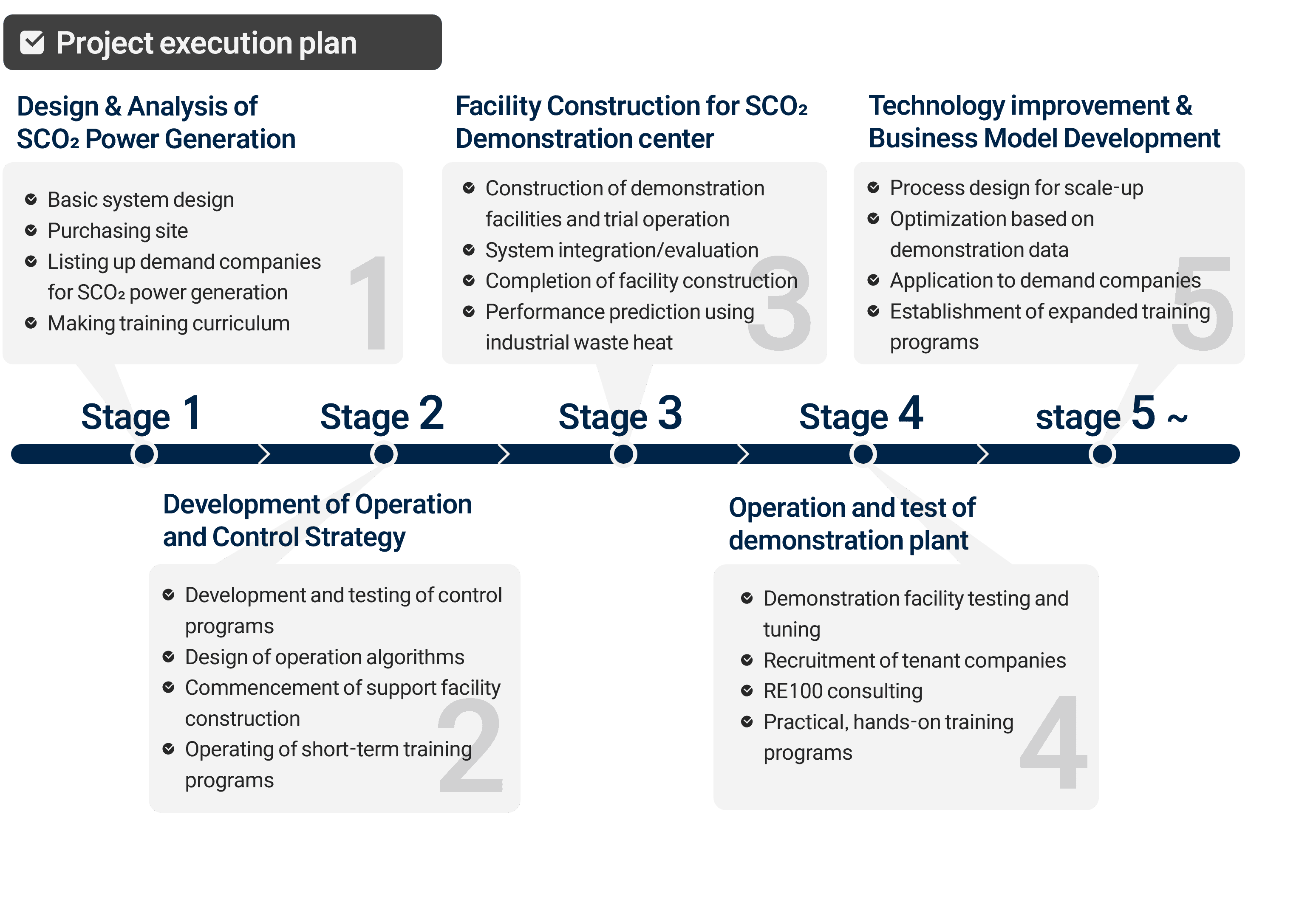 Basic design and thermodynamic analysis of the sCO₂ power cycle, with refinement of the overall system concept. Development of a database on waste heat resources in the Yeosu and Gwangyang industrial complexes to support site selection and strategic planning.